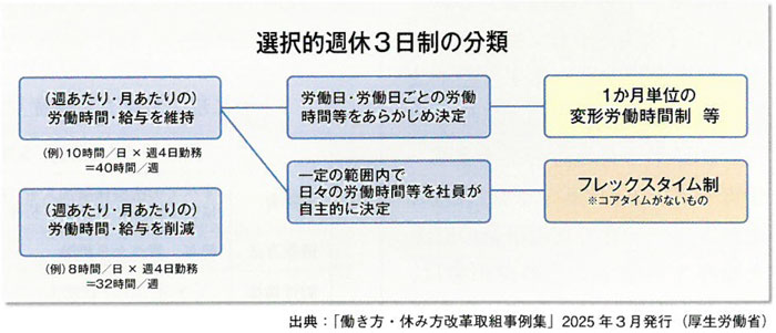 選択的週休3日制は、労働時間と給与の観点から、大きく2つのタイプに分類されます。