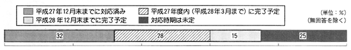 ・制度への対応については、「平成27年12月末までに対応済み」と回答した経営者が約3割となりました。